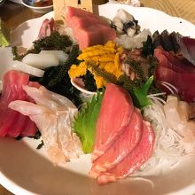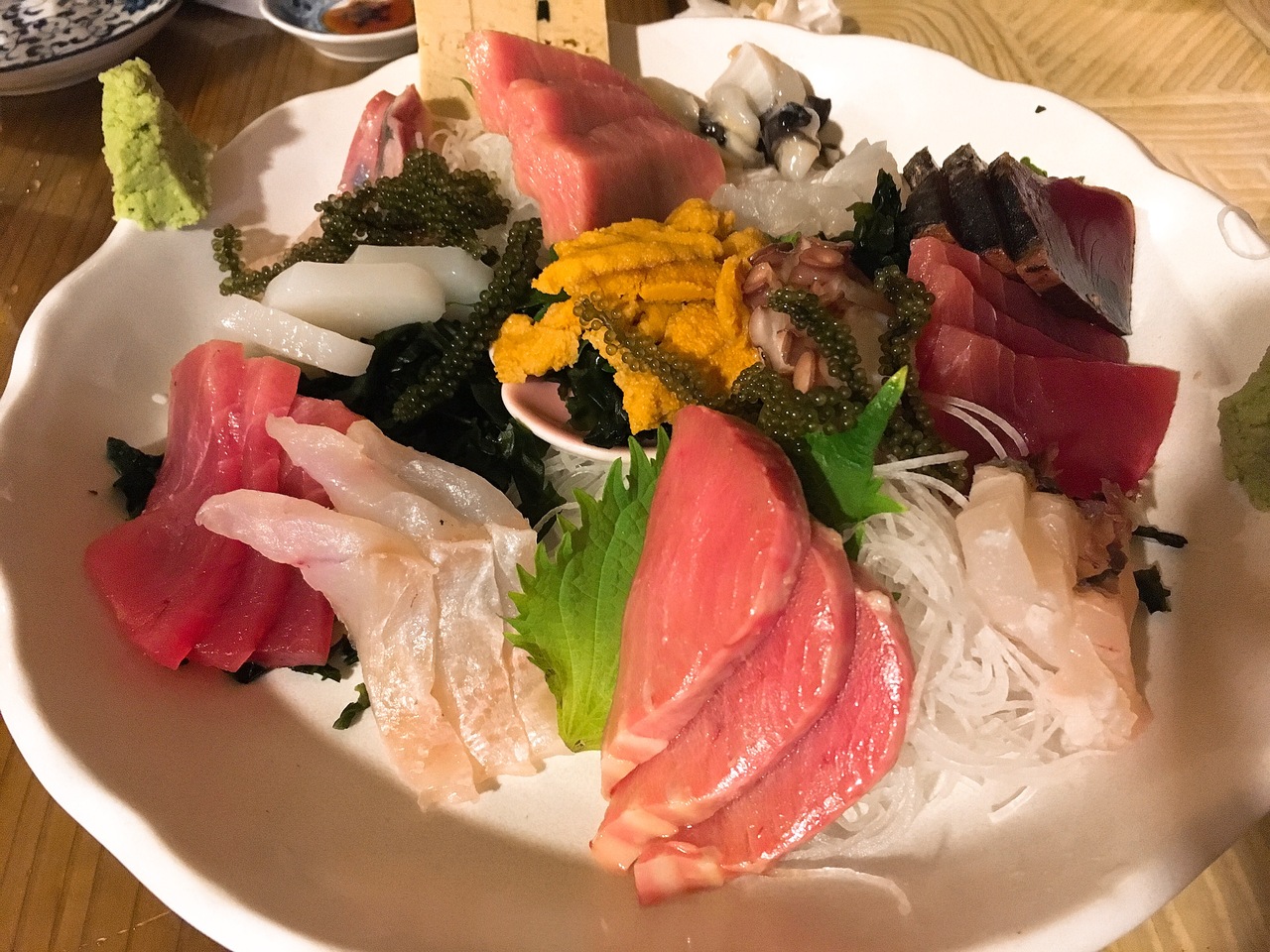 勢いづいて刺身の盛り合わせを頼みました、人数分。かなりのボリュームなので人数分要らなかったです・・・その分他のを頼めば