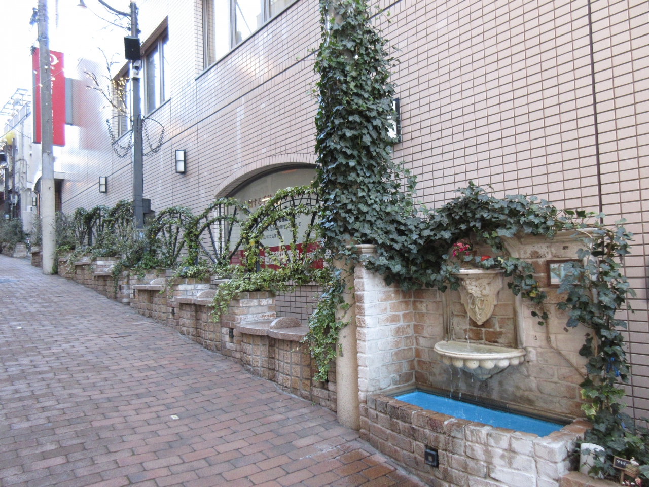 中野駅南口ロータリーに面した信託銀行横の路地です。約100mの路地の入口に、2002年と記されたオシャレな門があります。レンガ坂道の両側に飲食店が並び、それぞれ特徴ある店です。オリーブやアイビーが低いレンガ塀に植えられ、椅子があり異国風の路地を演出しています。平日午前に訪れたので開いている店は少なかったですが、歩く人が多く、抜け道のような役割もあるようです。歩くだけでも楽しいです。