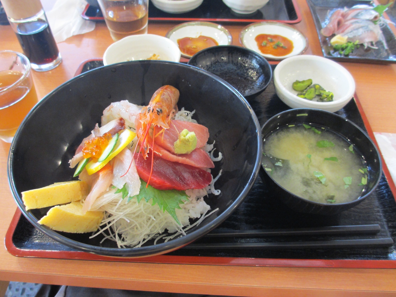 三崎港、産直センターうらりの向かいに建つ定食と海鮮丼の店です。周辺には数軒同じような店がありましたが、最も店構えが良かったので選びました。マグロが売りの店で、マグロ海鮮丼とサンマ刺しを食べましたが、丼に乗った赤身、中トロ、大トロ、サンマどれも脂がのっていてとても美味しく、牡丹えびの大きさにもびっくり、お薦めできる店だと思います。会計時にはうらりで使用できる割引券ももらいました。三崎を訪れた際にはぜひ再訪しようと思います。