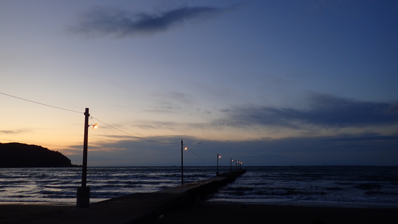 ここにある桟橋は木造で趣があり、特に夕暮れ時は、その延長線上にある一面の夕焼け空の向こうに富士山のシルエットが浮かび上がる、何とも幻想的な光景が見られる時もあるらしい。
