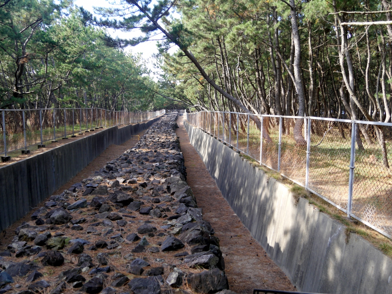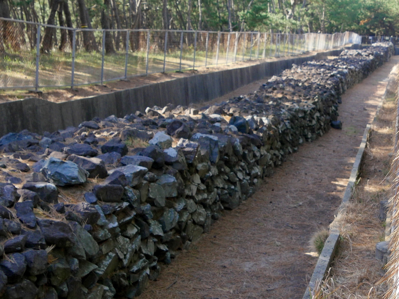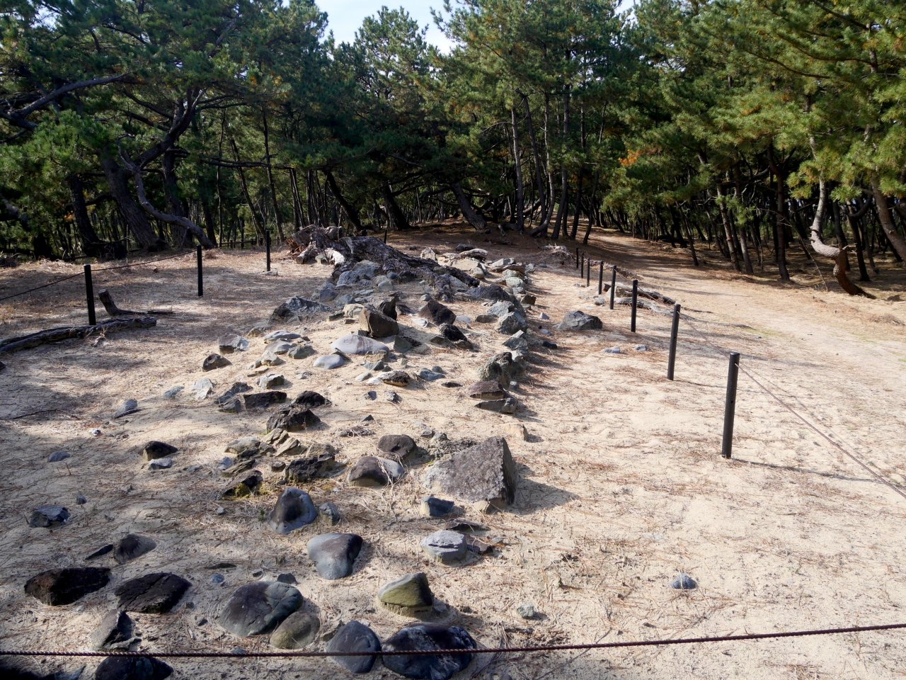 今津の元寇防塁を見学に緑町集会所の駐車場に..ここは防塁を200mほど復元している.高さ3mは当時の人々からは結構高かったろうと思う.騎馬でも乗り越えられなかったろう.復元以外にも地中にある防塁が所々覗いていた.分担させてつくり,つなげたとの事で途中が少し曲がっているのも,ご愛嬌だねとおもった.(当時の武士たちは切迫していたと思うので少し失礼かな)史跡広場のインフォがビデオ付きで充実しているのに驚いた.よくこわれて作動しないことが多いが,ここはちゃんと作動した.ここの海岸もきれい.毘沙門山がアクセントになる風景だ!