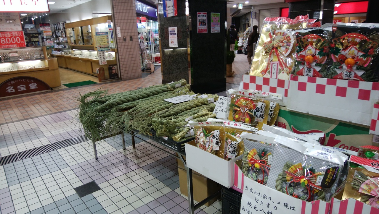 スーパーでも見掛けるコンパクトな飾りも有りましたが全長3メートルは有る感じの大きな縄飾りも