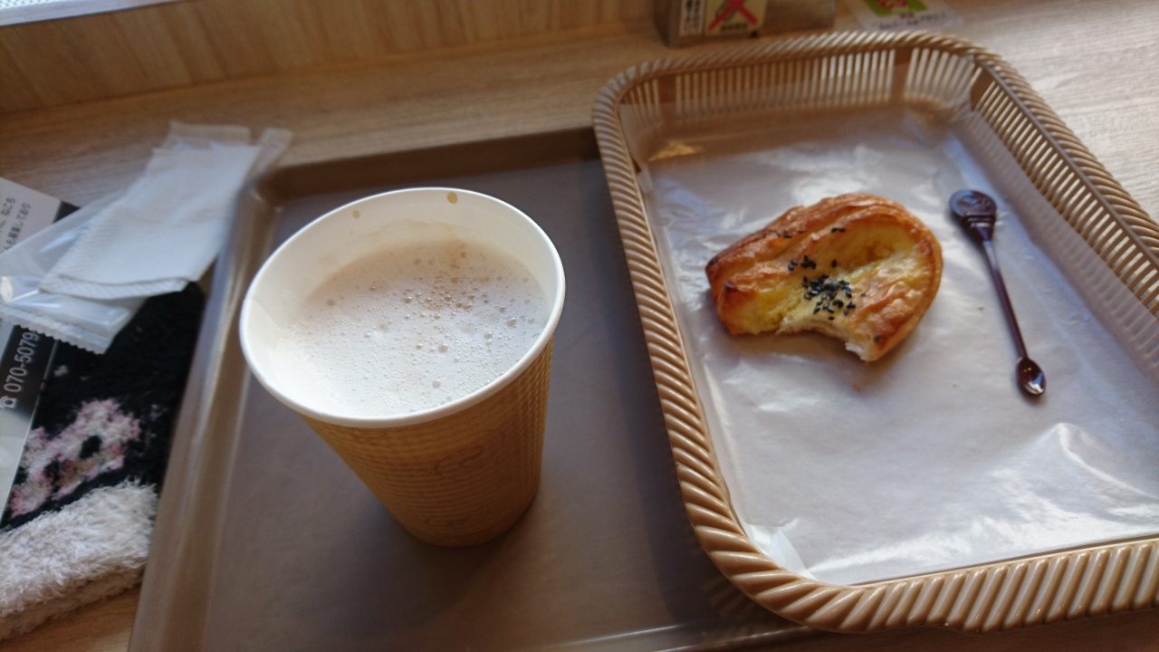 コ-ヒ-を飲みたくて立ち寄ったところ、コ-ヒ-だけだと400円。パンを一点でも購入されるとコ-ヒ-は200円になるというシステムになっていました。ということで「芋ワッサン」という小さいパンを購入。コ-ヒ-と合わせて264円となりました。