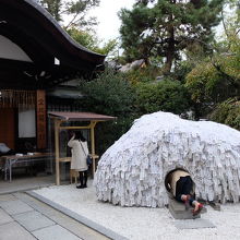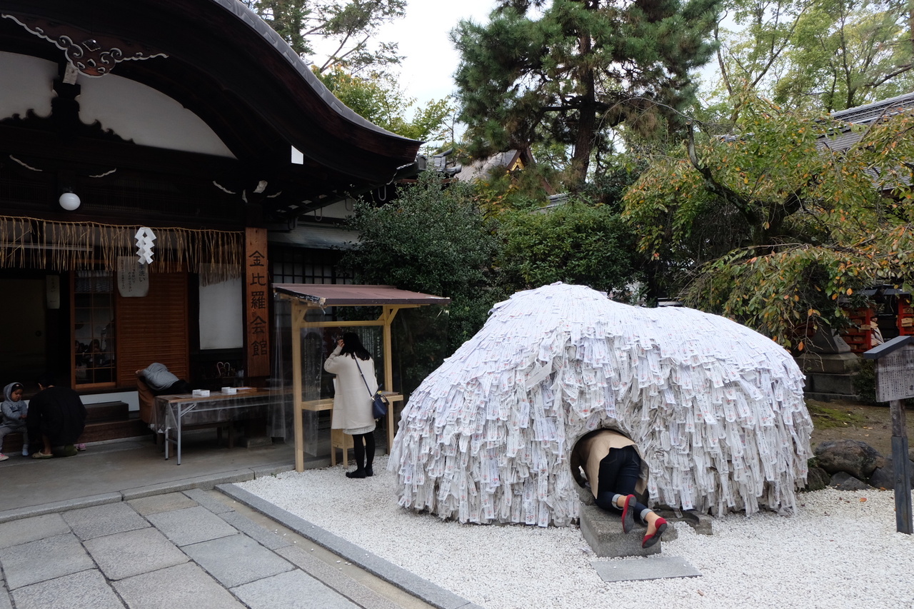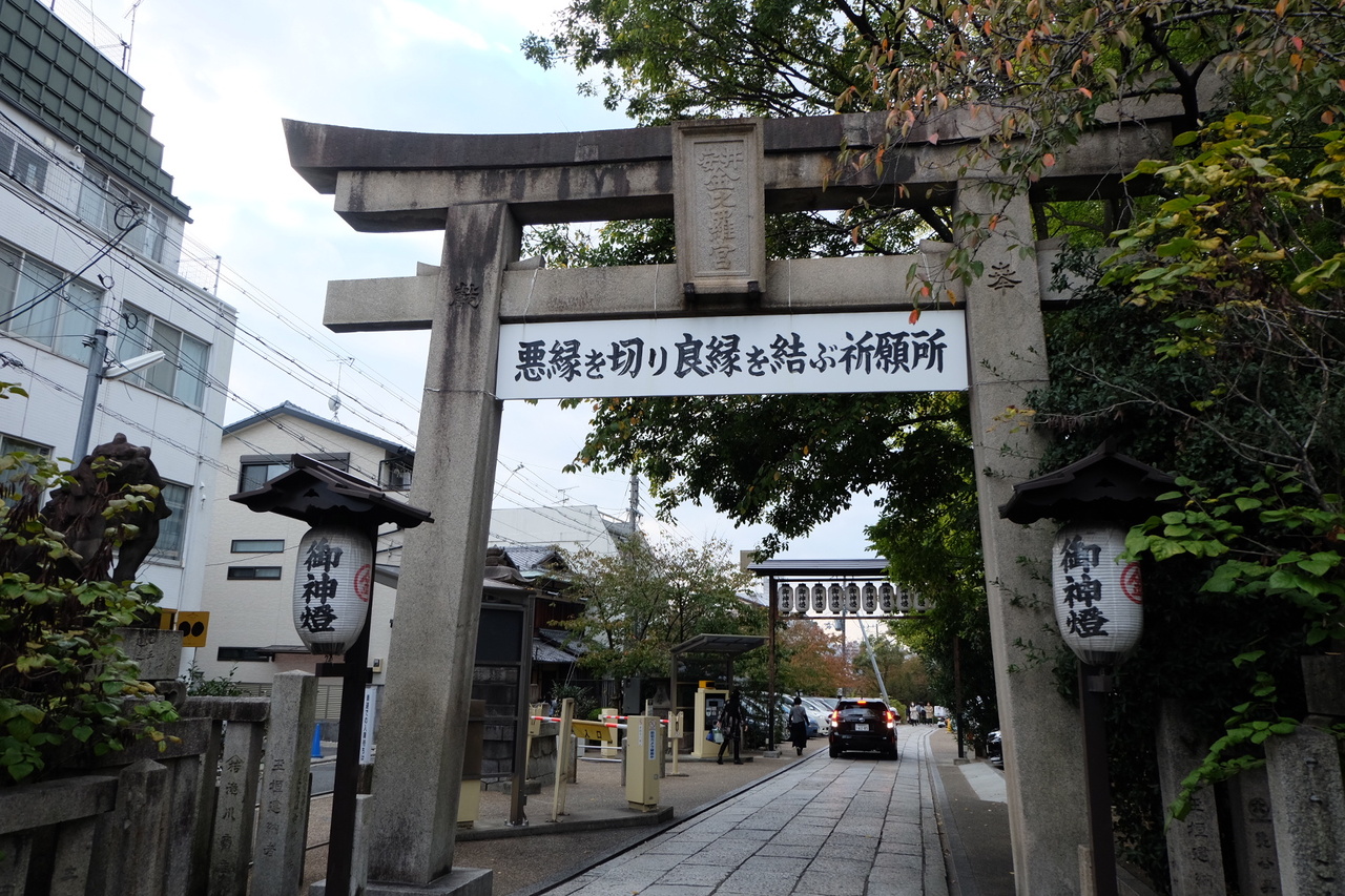 京都東山にある神社です。悪縁を切り、良縁を結ぶといわれており、縁切り縁結び碑というお札で埋め尽くされた穴の空いた巨石があり、この穴をくぐると悪縁を切り、良縁を結ぶ祈願ができるそうです。行った時は休みだったこともあり穴をくぐるのに行列ができていたため、お参りのみにしました。御朱印もいただけます。