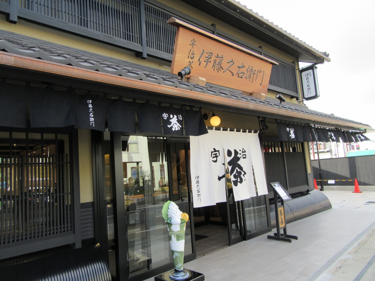宇治観光の最後に、店先に展示された大きな抹茶パフェのオブジェに惹かれ休憩することに。店内は広くとても居心地の良い空間が広がっていました。
