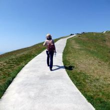 歩道はコンクリートで舗装されていて安全に歩けますが、けっこうアップダウンがあるので、見た目より大変な場所があります。