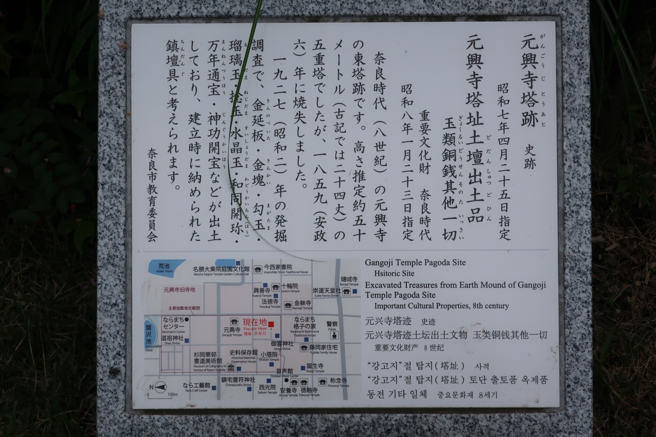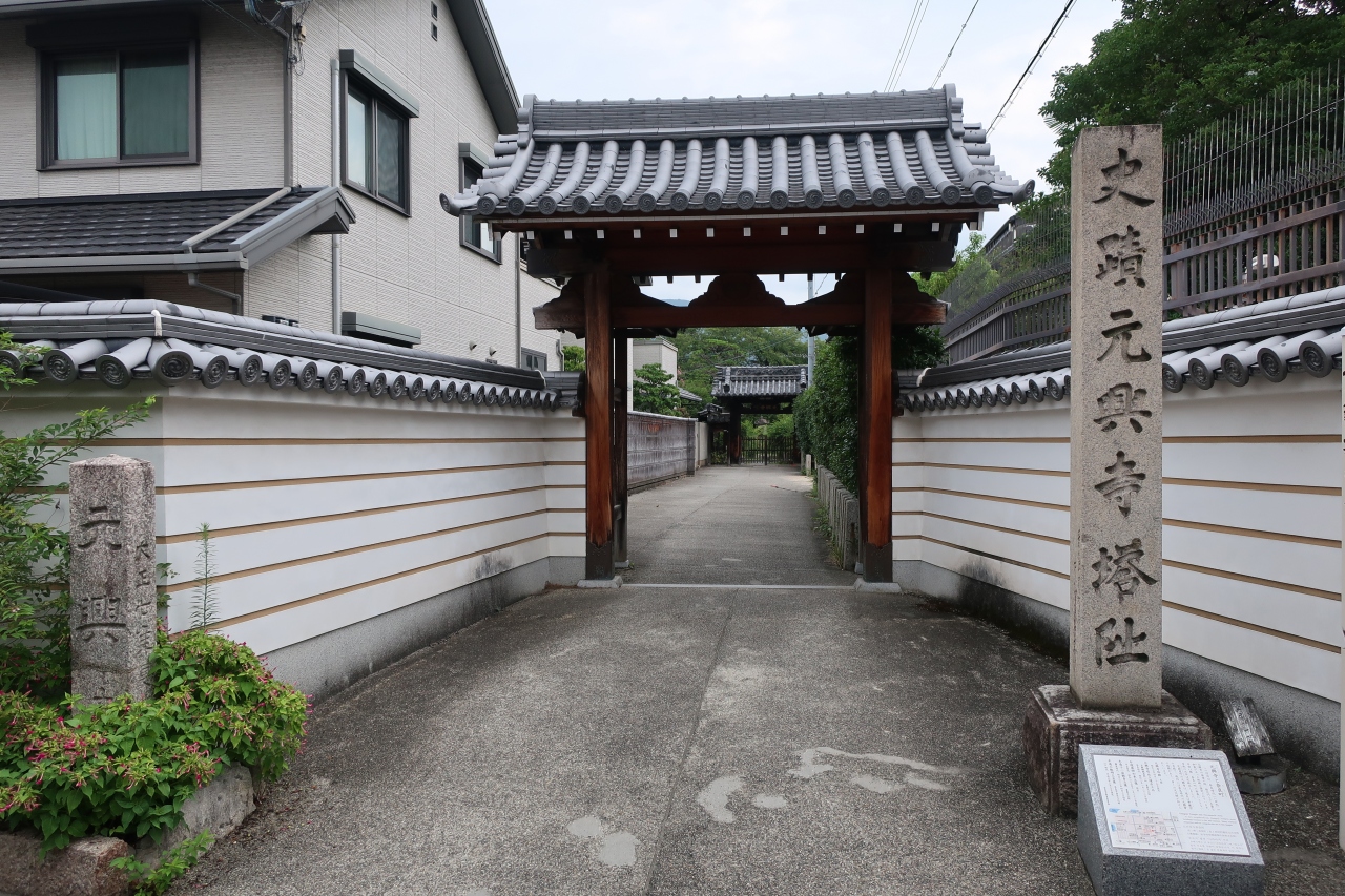 奈良町の御霊神社の裏に、民家に囲まれて元興寺塔跡があります。元興寺と言うと極楽坊だけのように思いますが、奈良町一帯が元興寺の境内で、この場所には明治時代直前に焼失するまで東塔があった場所です。境内には東塔の礎石が綺麗に残っています。