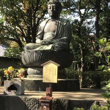 浅草寺の本堂でお参りをした後、左のほうに進んだ先にありました。浅草寺の境内には多くの像がありますが、こちらの銅像はその中でも大きめでした。そのためか、海外からの観光客の記念撮影で人が多く集まっていました。