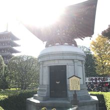 浅草寺の本殿から左のほうへ向かい、影向堂があるエリアを通過した先にある淡島堂の敷地内にありました。1994年に建てられたものだそうで比較的新しかったです。建物の前には説明書きの看板がありました。このあたりは人も少なく静かでした。