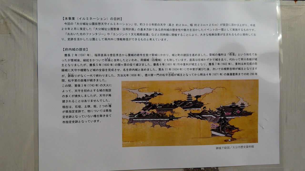 大分城址公園に仮想の天守閣が設置されイルミネーションが点灯されます!!