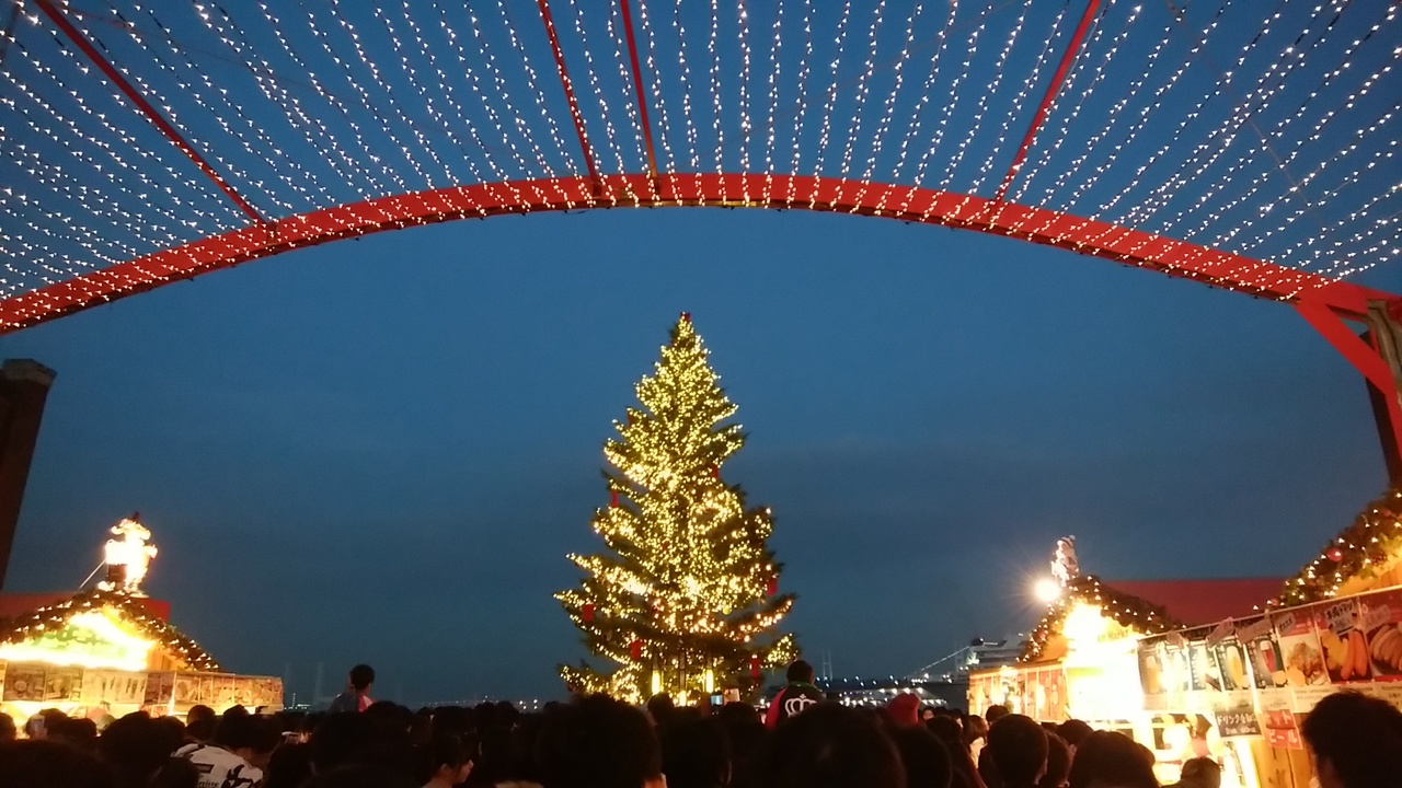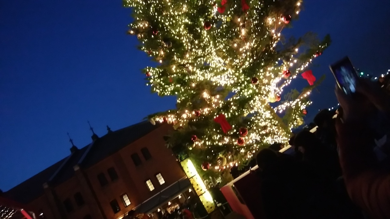 気がつけばもうクリスマスイブ。まだみなとみらいのツリーを見てないので急きよ赤レンガ倉庫へ。大桟橋には飛鳥2号が停泊中で眩い明るさ! 遊歩道を渡って到着すると、人、人、人! 入口からツリーまで十数分かかったわ。途中スノ一ドームやシュトーレンなどのお店やホットワインにソーセージなどフード店もありましたが長蛇の列であきらめたわ。ツリーの写真だけとって帰りました。