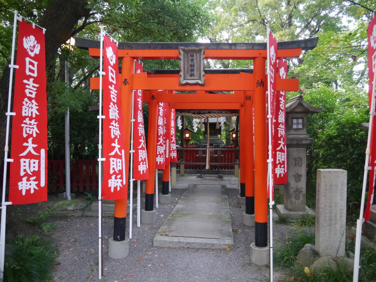 大江神社の片隅に、摂末社の「日吉稲荷神社」が設けられています。