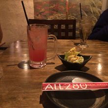 均一280円の料理(アルコール等も含めて)なので、個数さえ気にしておけばそこまで高くなることは無いと思います。焼き鳥や釜丼、焼き物などを含めて種類数はそこそこあります。メニュー表のバーコードをペンでタッチして注文するので、各自のペースでゆっくり注文できますね~