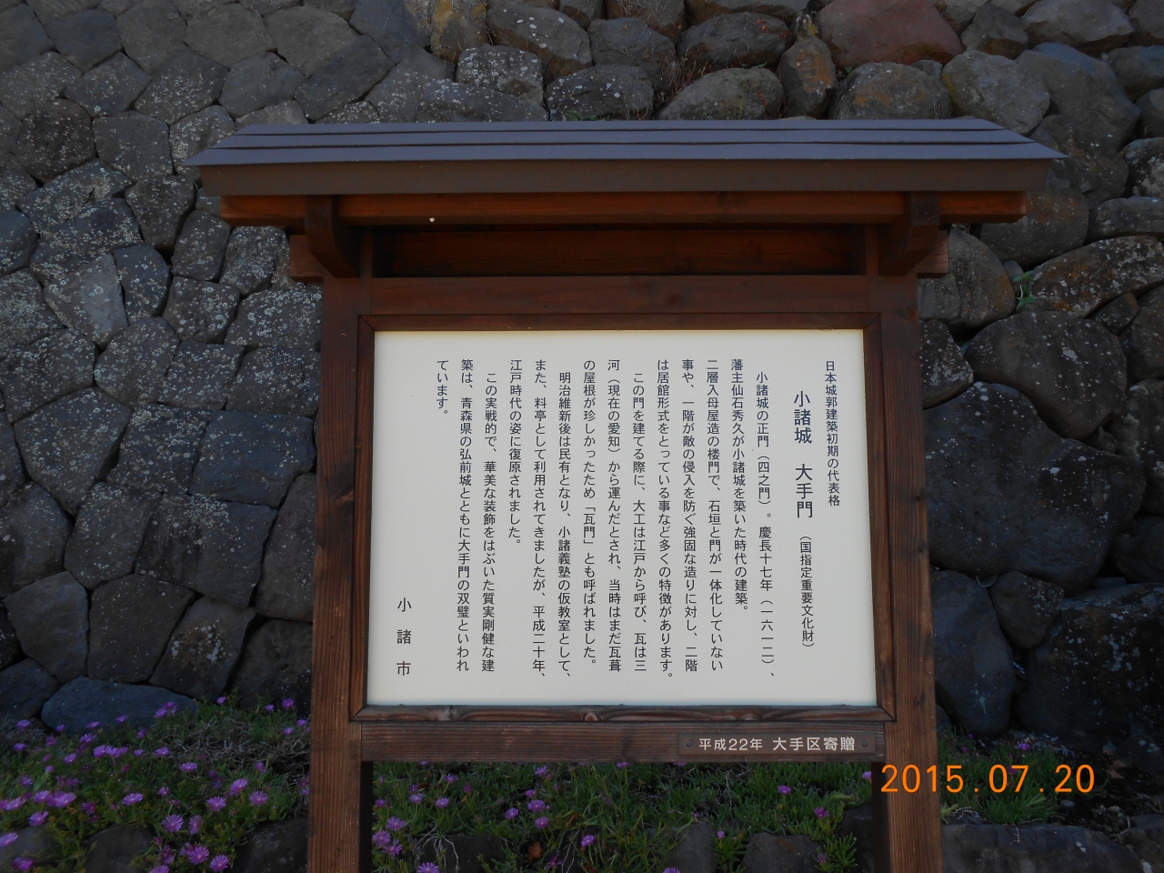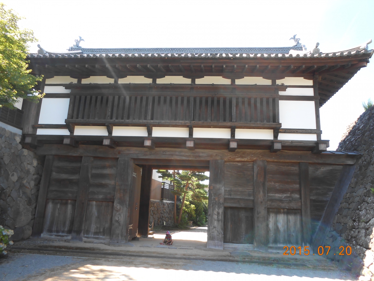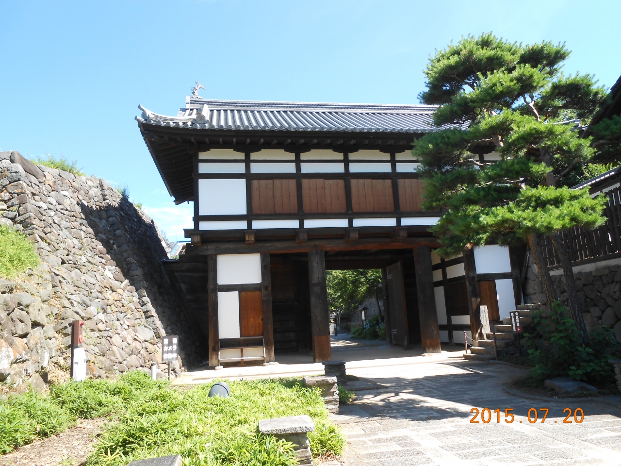 懐古園の入口にある三の門から、地下通路を通り、少し歩くと小諸城大手門があります。