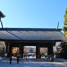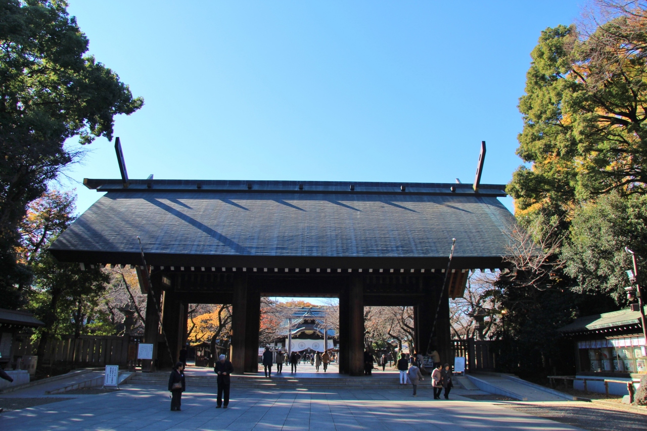 靖国神社の第二鳥居と中門鳥居の間にある大きな門です。中央の二つの門扉には、直径1.5mの大きな菊花の紋章が取り付けられているのが印象的でした。