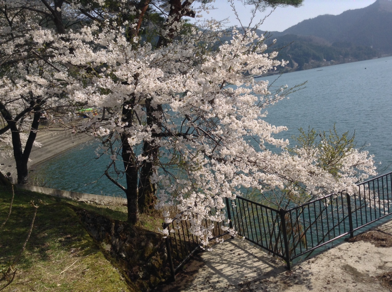 山の中にあり、また湖周辺であるので、見頃が4月下旬からと遅いです。