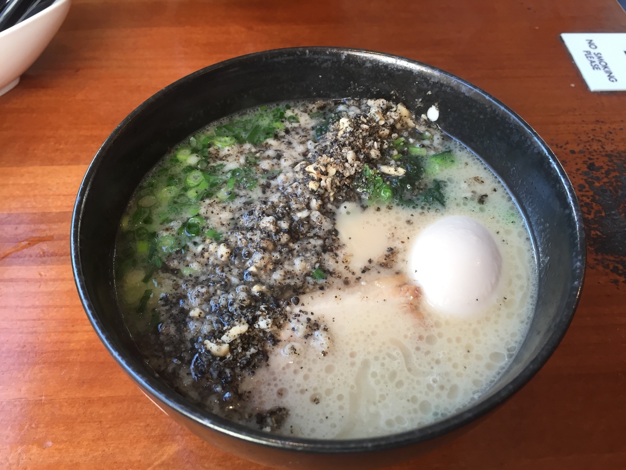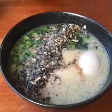 こってした豚骨ラーメンです。農工大生御用達の様子。東京に進出して来ている博多の豚骨ラーメンを想像して食べるとだいぶ違った印象を受けると思います。ゴマとカシューナッツが独特の風味を出しています。次は黒を食べてみたいですね。