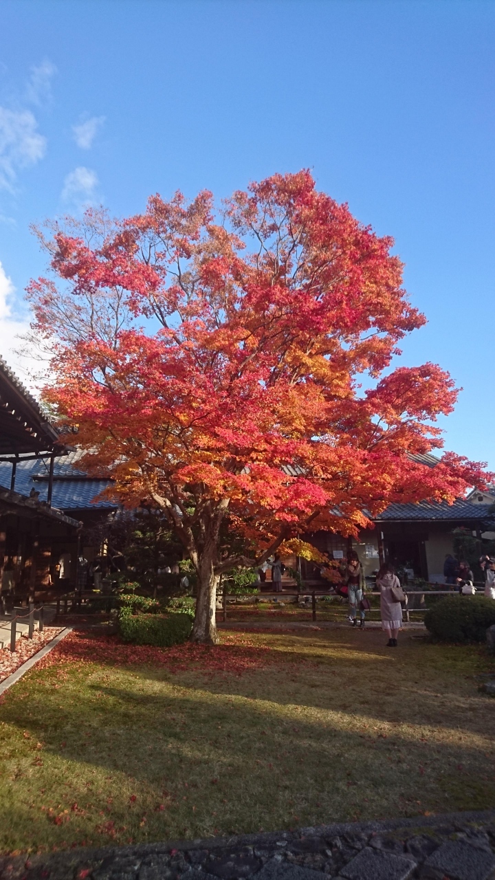 源光庵に行ったときに庭にある紅葉に圧倒されました。大きくそして鮮やかに色づいた紅葉にとても魅了しました。本堂内にある丸い窓の「悟りの窓」とその隣にある四角い窓の「迷いの窓」から見た景色も美しく、窓を見るだけでも絵になりました。