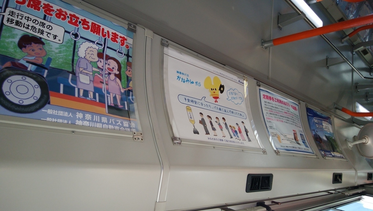だんだんと混み始め車内は満員でしたが運転席後ろのビジョンで天気予報を見たり引越坂という面白い停留所が有ったり沿線は横浜市の中でも郊外なので地方で見掛ける様な大きな看板に広い駐車場のチェーンレストランも多く又ポーラやブリヂストンなど大手企業の工場も有り車窓の景色を楽しめました