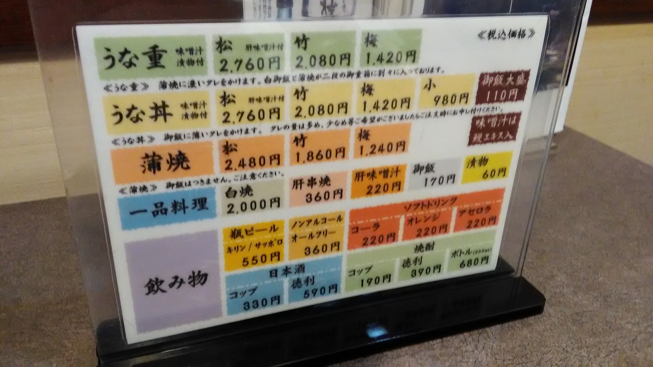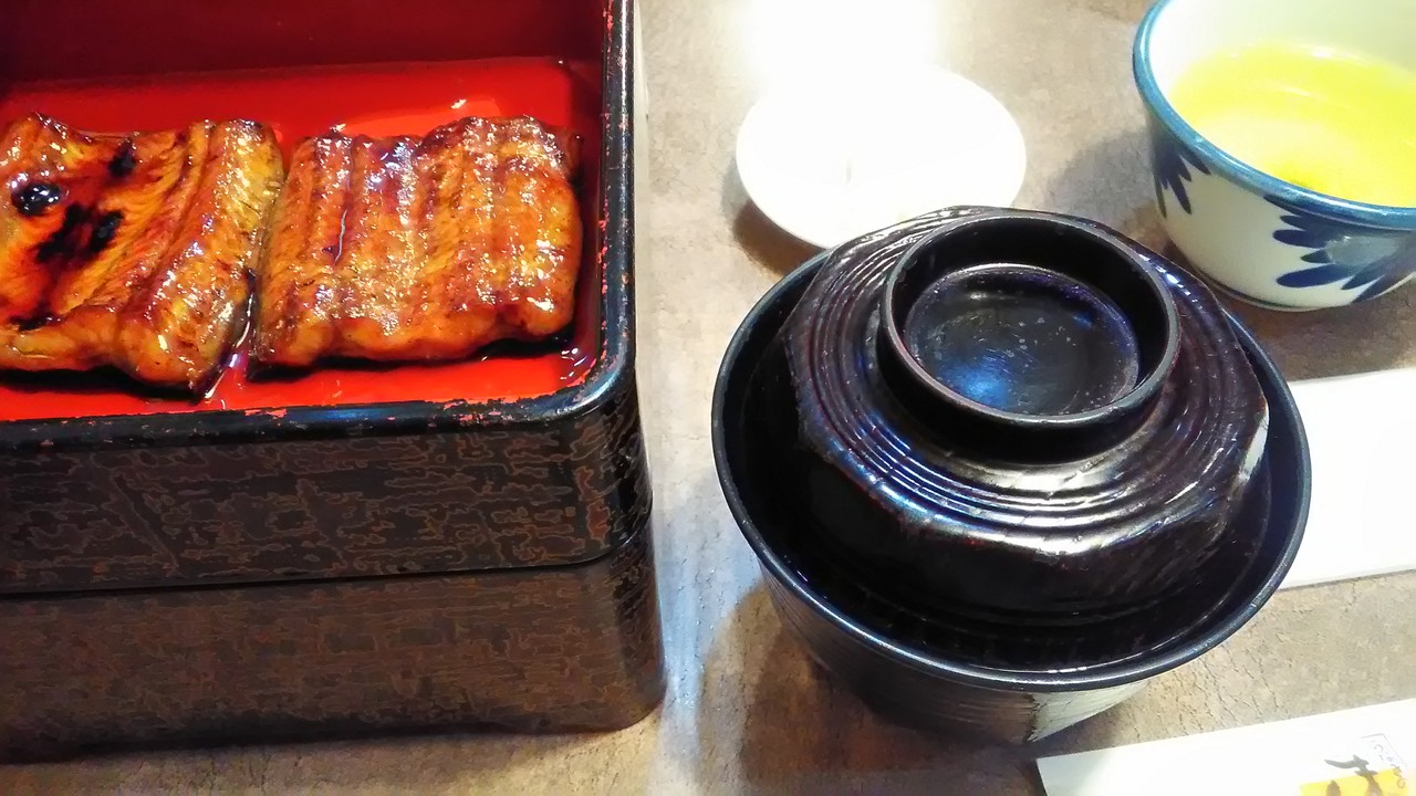 うな重、梅1420円。松がウナギ4切れ、竹が3切れ、梅が2切れ。安物にあるような、くさみが全くなく、身もやわらかい。値段も安いように思う。昼から、通しで営業しているので、少し夕飯には早い時間だったが、ごはんにありつけて良かった。持ち帰りしているお客さんもいた。