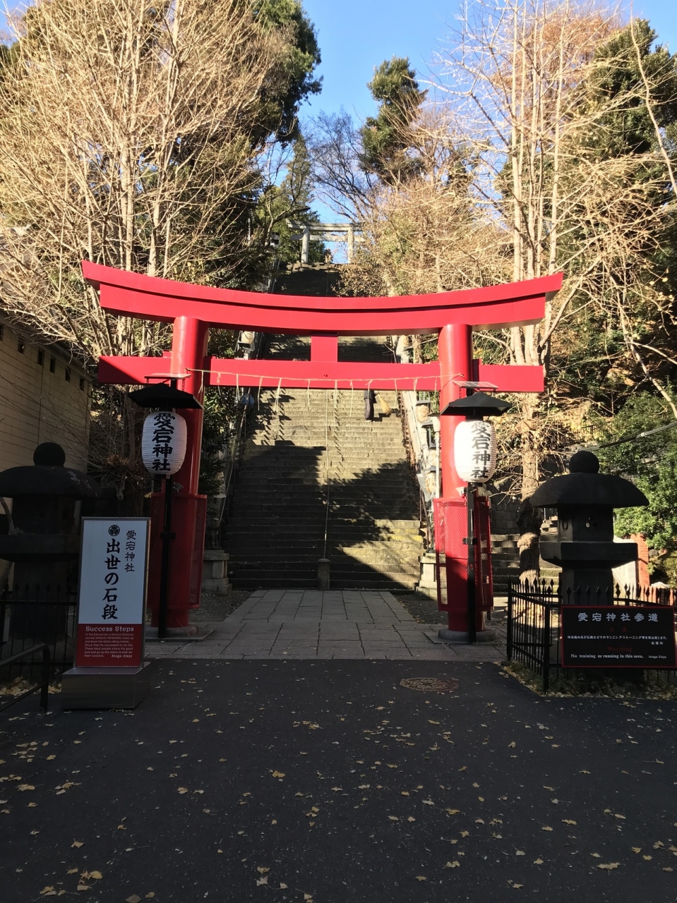とうきょうのど真ん中虎ノ門から徒歩10分ほどの所に突然小山がありその上にある神社。出世の石段というものが300段ほどであるがそれを登ると出てくる。神社自体は小さいが横に小さなじんじゃもあり