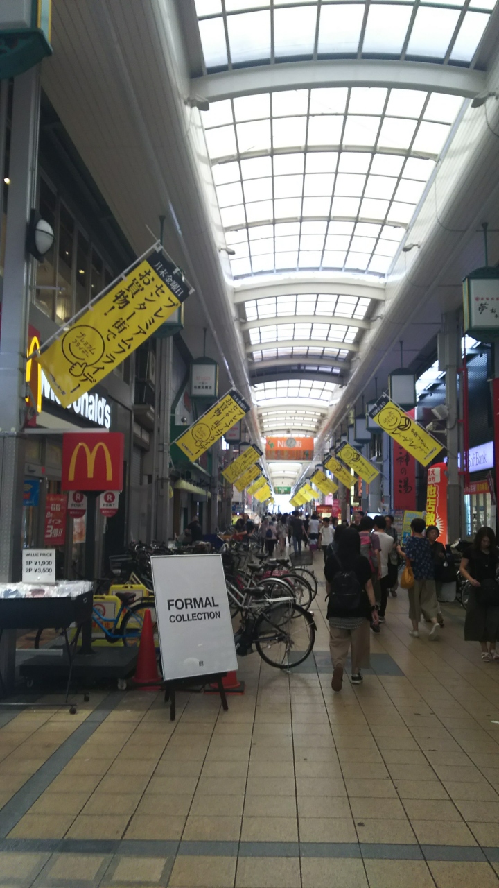 八月の暑い日の月末、プレミアムフライデーの日によりました。いつも通り結構活気はあるのですが、プレミアムフライデーの旗がいっぱいありましたね。夏場でもアーケードなので直射日光が当たらないのはいいですね。
