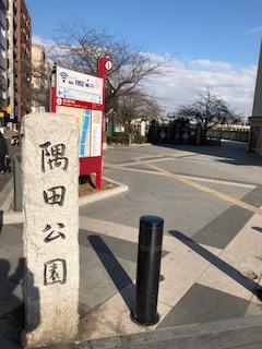 浅草側からは吾妻橋の近くから下のほうに降りていくと公園がありました。