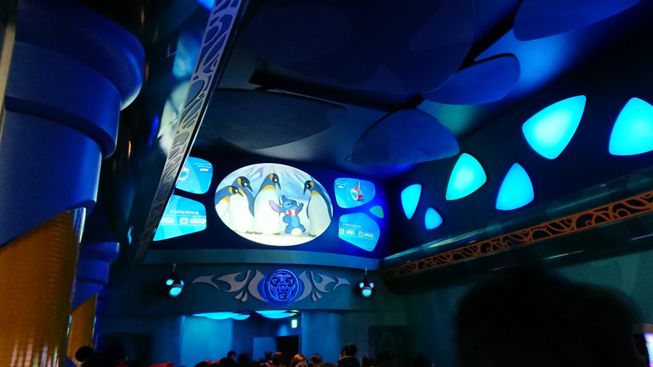 大画面にいるスティッチが観客に話しかけてくるアトラクション。
