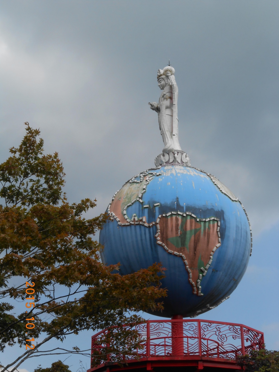 大観音の内部は阿弥陀三尊と一万体観音。更に上ることが出来て、展望台になっています。スペースは狭いのですが、混んでいないので、ほぼほぼ貸し切り状態で見学できます。紅葉シーズンは景色が良さそうです。ぐるりと巡ると良い運動になるぐらい歩きました。