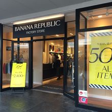 バナナリパブリックです。都内にも何店舗かあって時々利用しています。六本木のバナナが閉店してからは、訪れる回数がやや減りましたが、ここ木更津では外せません。今回も好みのアイテムを何点か購入しました。合わせやすくて、ちょっと上品な感じのする服が揃っていて、且つ価格はお手頃なんですよね。12月のセール期間中はオール50%オフ。どの商品もです。品揃えやサイズも不満なく選べました。尚、通常Mサイズの人は、Sサイズを選ぶことをおすすめします。ワンサイズ大きいので。上下に関わらず試着するのがベストですが。