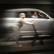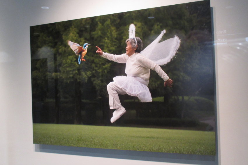 奇抜な?自撮り写真で有名な、アマチュア写真家の西本喜美子さんの写真展をやっているとのことで訪れました。西本喜美子さんはもう87歳なのだそうですね。年齢とは関係ないとはいえ、これらの写真のアイディア溢れる頭の柔らかさに恐れ入るばかりでした。また、入場料なしも恐れ入りました。