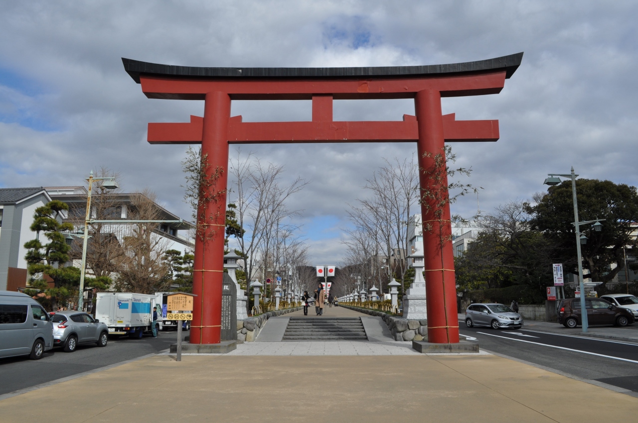 JR鎌倉駅を出て、段葛の入口にある鳥居が「二の鳥居」と呼ばれている朱色の美しい鳥居になります。ここから見る段葛も、反対側の由比ガ浜方面も一直線でとても美しい街並みであることがわかります。春になれば段葛には桜が咲き、鳥居と相まって非常に美しい光景が見られます。ぜひ鶴岡八幡宮を参拝される方は、この二の鳥居を通って参拝していただきたいですね。