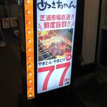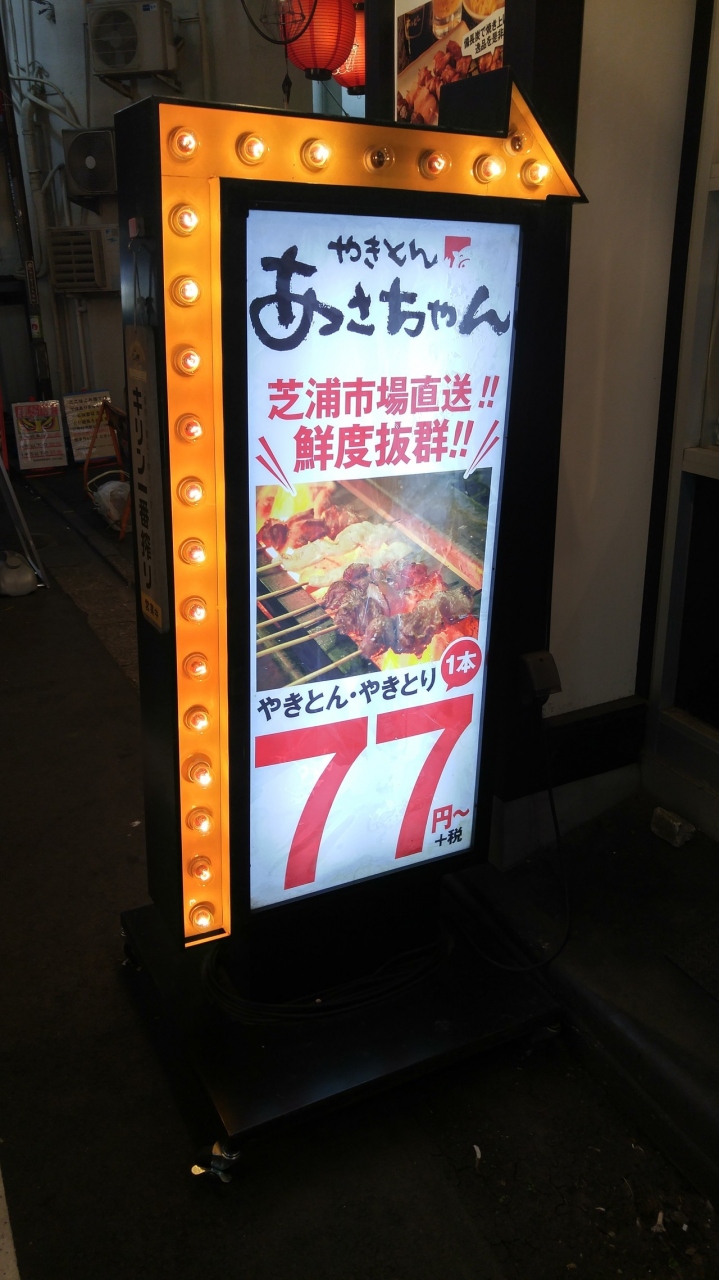 赤羽駅のすぐの飲み屋街にあります。焼きとん屋さんです。昼間からお酒を飲みながら楽しめるところで、焼きとんの他にもレバーなど、色々と揃っており、値段も安いので、お酒も進みます。知らないおじさんと気さくに話せる雰囲気です。