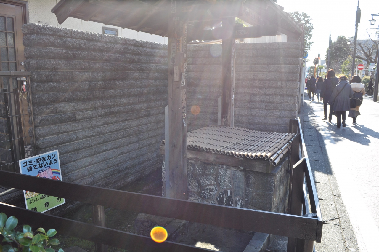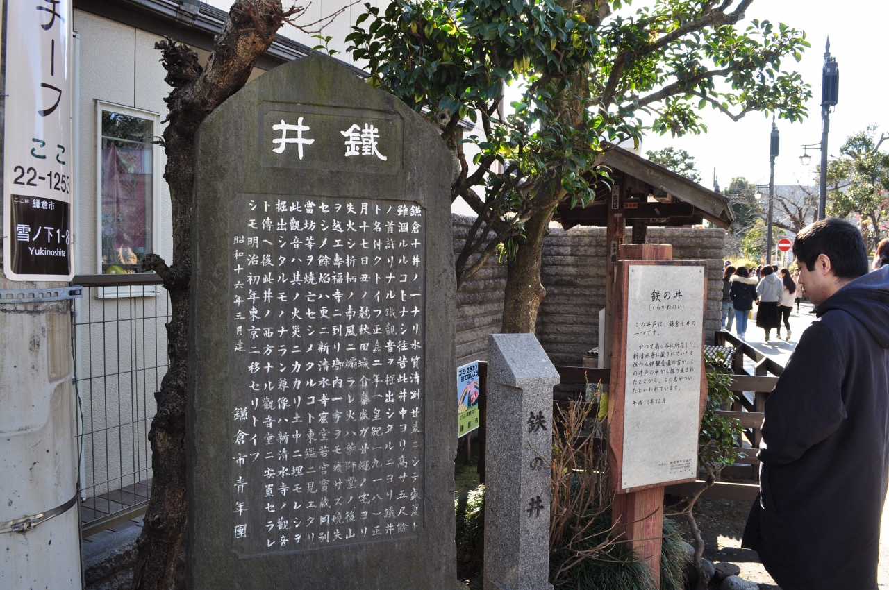 鎌倉には「鎌倉十井」と呼ばれる有名な10の井戸が現在も史跡として残されています。この「鉄の井」はその中でも最も有名な井戸ではないでしょうか。小町通りの端っこ、鶴岡八幡宮のすぐそばの角にこの井戸はあります。「鉄の井」なんて、井戸につけるには不思議な名前ですが、かつて鎌倉時代に起きた火災で、新清水寺の鉄の観音像がこの地に埋まってしまい、やがてこの井戸から観音像の頭部が見つかったことからこの名前が付けられたそうです。あまり見ごたえがある史跡ではありませんが、鎌倉の歴史が学べて良かったです。