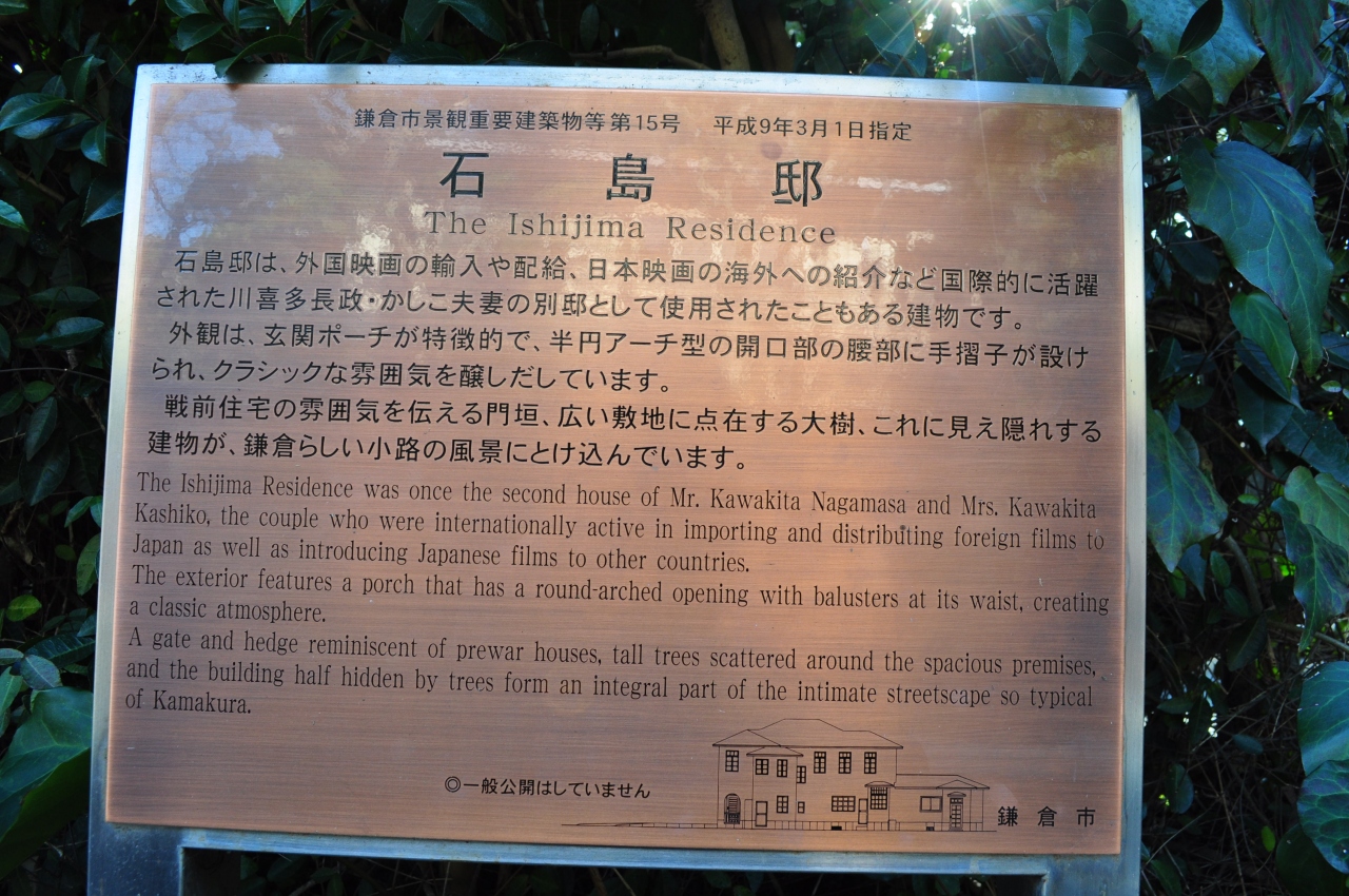 小町通りにある史跡「鉄の井」の近くにある建物で、海外の映画を輸入したり、日本映画を海外に輸出して普及につとめた川喜多長政夫妻の別邸として利用されいた建物との事です。内部は一般公開されていないので、外から眺めるだけですが、西洋風のとても洒落た建物であることが見てわかります。やはり鎌倉は文化人にとって特別な町であるということを再認識させてくれる史跡でした。