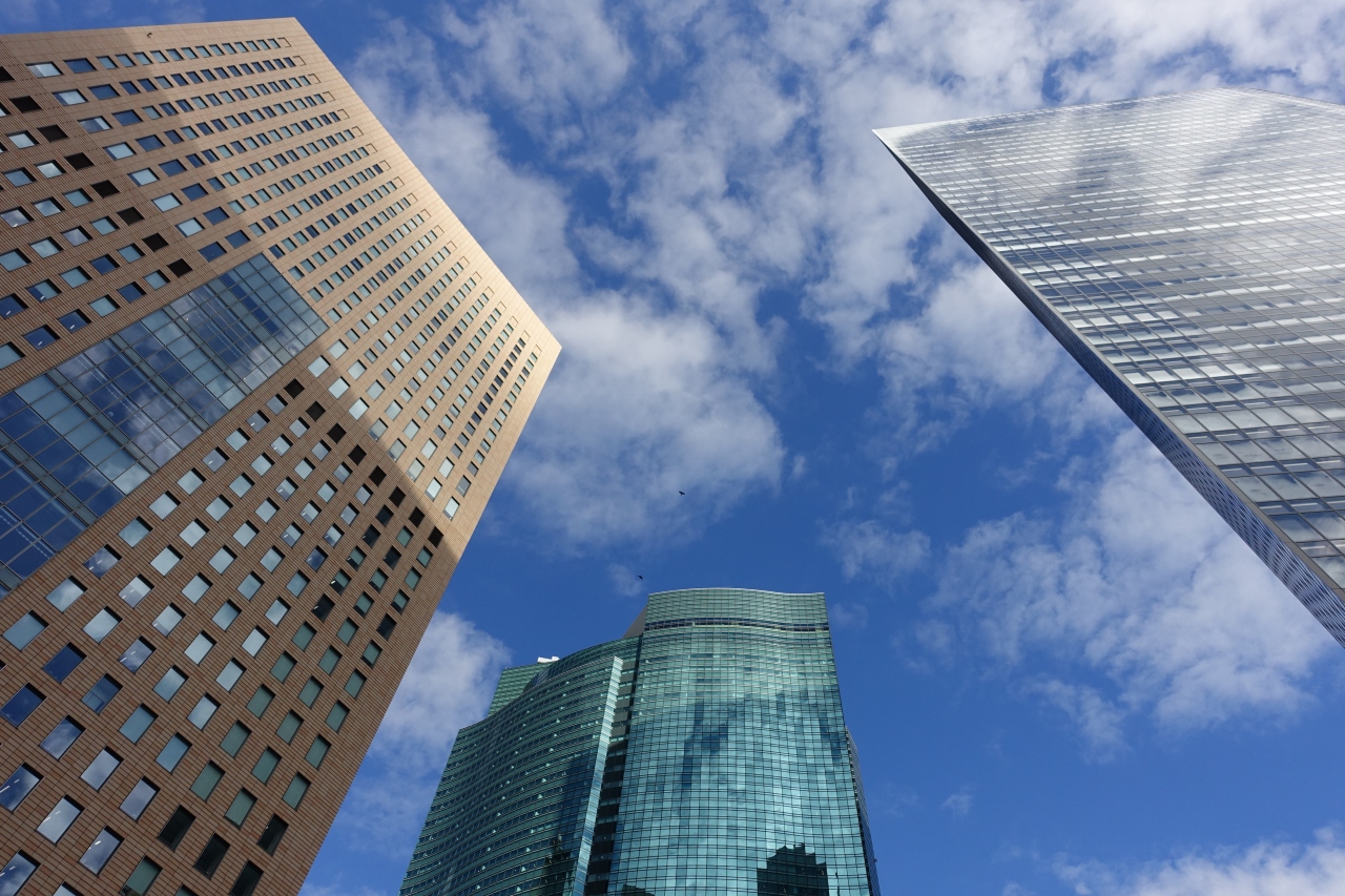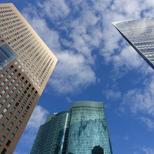 新橋の近くでありながら、汐留シオサイトの光景は、かなり違うものがあります。空に向かって、多くの近代的なビルが、まっすぐにそびえています。建物の近くをゆりかもめが走り、少し近未来の光景に近い感じもします。地上に降りると、近くに、浜離宮や築地市場のような日本らしい光景があるのも面白いです。