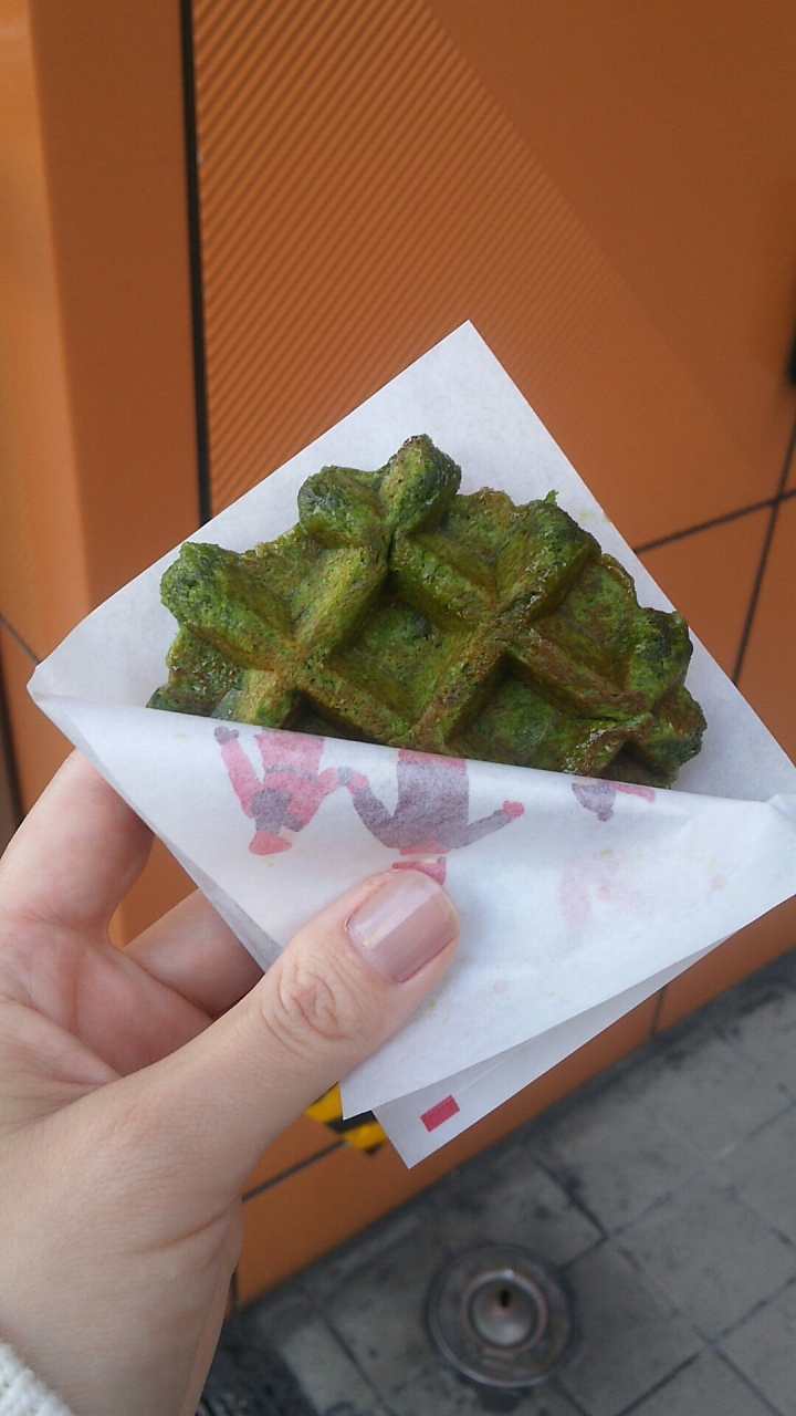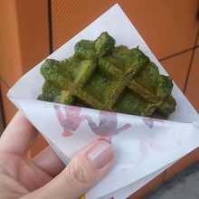 プレーン、チョコ、抹茶、イチゴ等のワッフルがあります。