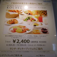 朝食付きのプランで宿泊した際に利用しました。約30種類の洋食・和食のブッフェ料理が並び、おかずやパン、フルーツなどの種類も多く、中央のライブキッチンでは、オムレツを焼いてもらえるサービスもありました。ゆったりと美味しい朝食が頂けて良かったです。