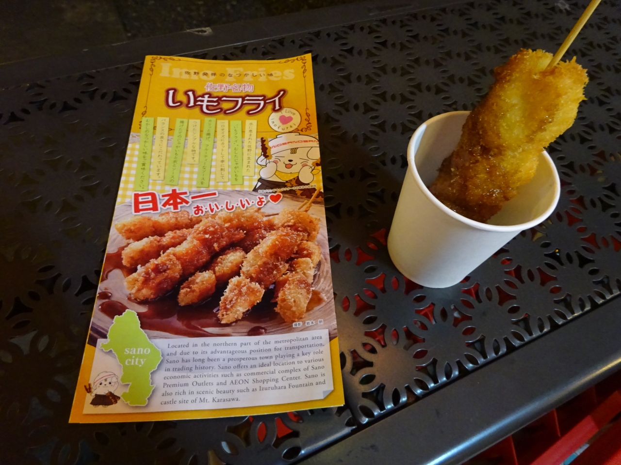 たこ焼き、やきそば、かき氷といった普通のメニューの他に、佐野のB級グルメ「いもフライ」があります。