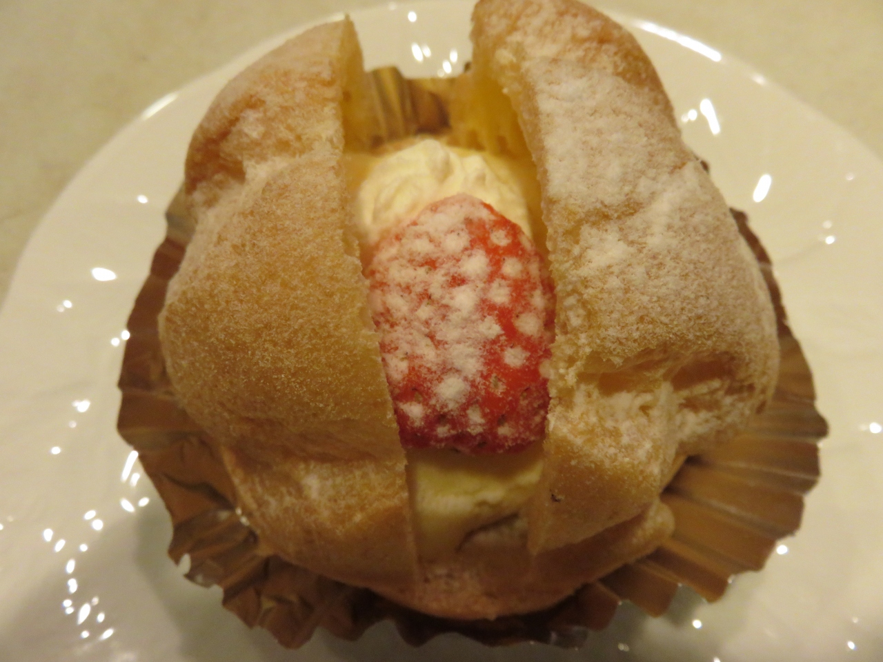 シュークリームはまずまずな大きさで、いちごも入って定番なおいしさ