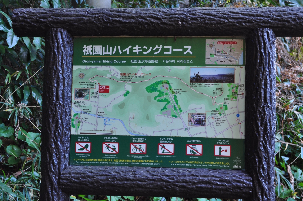 祇園山ハイキングコースは鎌倉の東勝寺跡から鎌倉南部にある八雲神社の裏手につながる30分ほどのハイキングコースになります。途中まで進んでみましたが、普通の山道なのでところどころぬかるんでいたり、岩場があったりと普通の靴ではきつそうだったので踏破は断念しました。今度は歩ける靴で散策してみたいと思います。