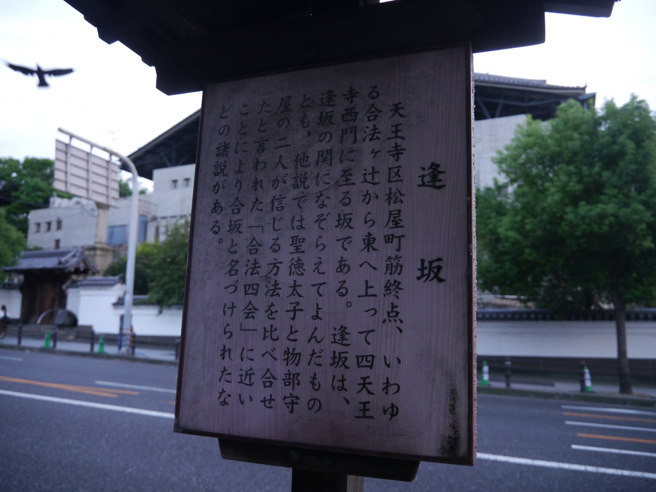 その喧噪の中をゆるゆる歩いて下っていたら、途中の一心寺付近に、「逢坂」と書かれた小さな標柱が立っていました。