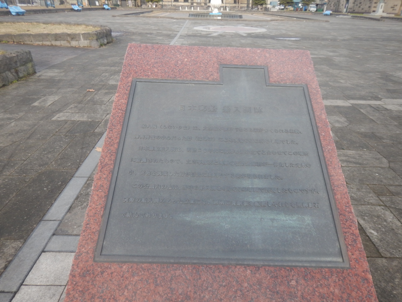 日本郵船の小樽支店前の舟入潤だったところを公園として整備したもの。小樽運河からはしけがここまで来て荷物を揚げたのだろう。公園の中央には噴水があるが、まだ朝早いし、4月では昼間でも噴水は稼働していないだろう。