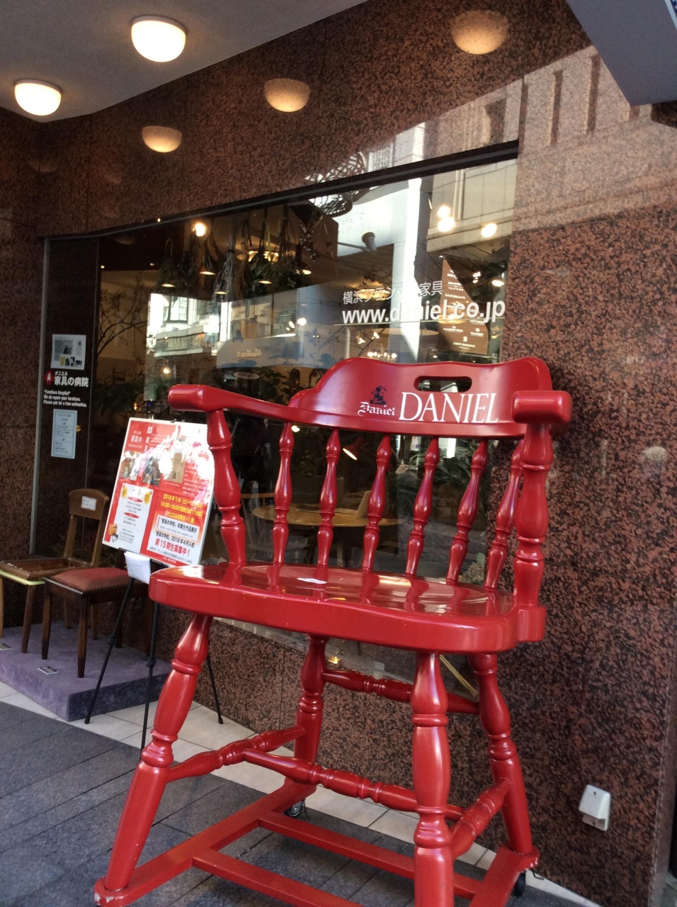 横浜元町商店街の丁度、真ん中あたりにあります。ダニエルさんは小さい頃、両親に連れられて元町に買い物に来た時は必ずダニエルさんの赤い椅子に座らせてもらいました。母が買い物をしている時に父と私、弟がダニエルさんの赤い椅子が大のお気に入りでしたので待ち合わせ場所ねした。店内には素敵な家具が沢山あります。