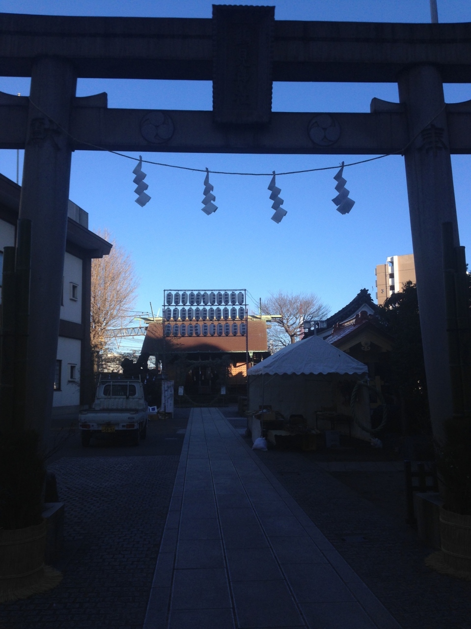 ちょうど初詣の準備中で、しめ縄などの販売も準備中でした。