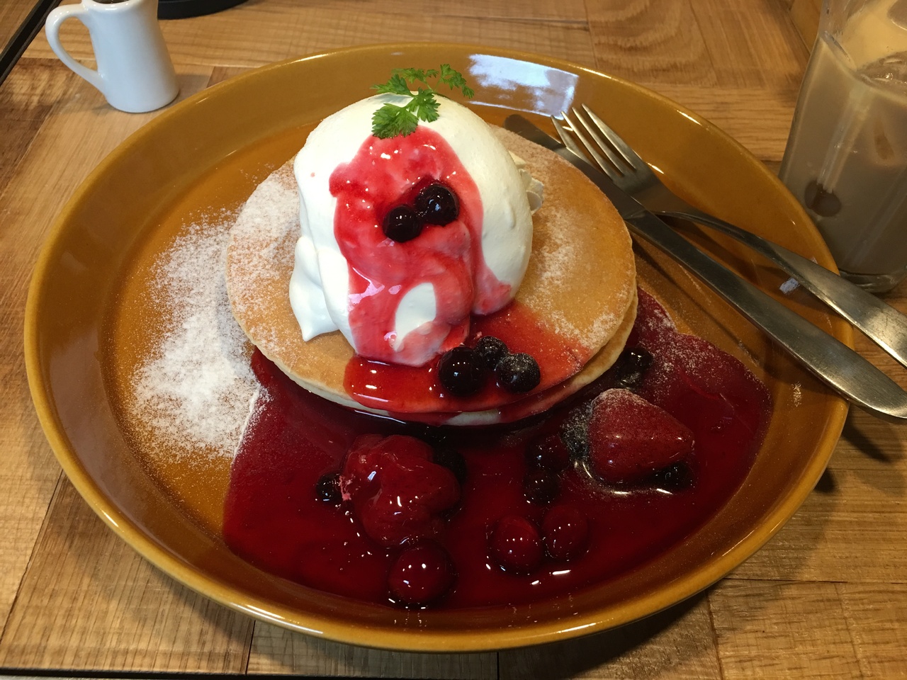 ランチ利用もできますが何と言ってもケーキ!種類豊富で、冷ケースに所狭しと並んでいます。これだけでも迷うのですが、パンケーキも美味しくて。