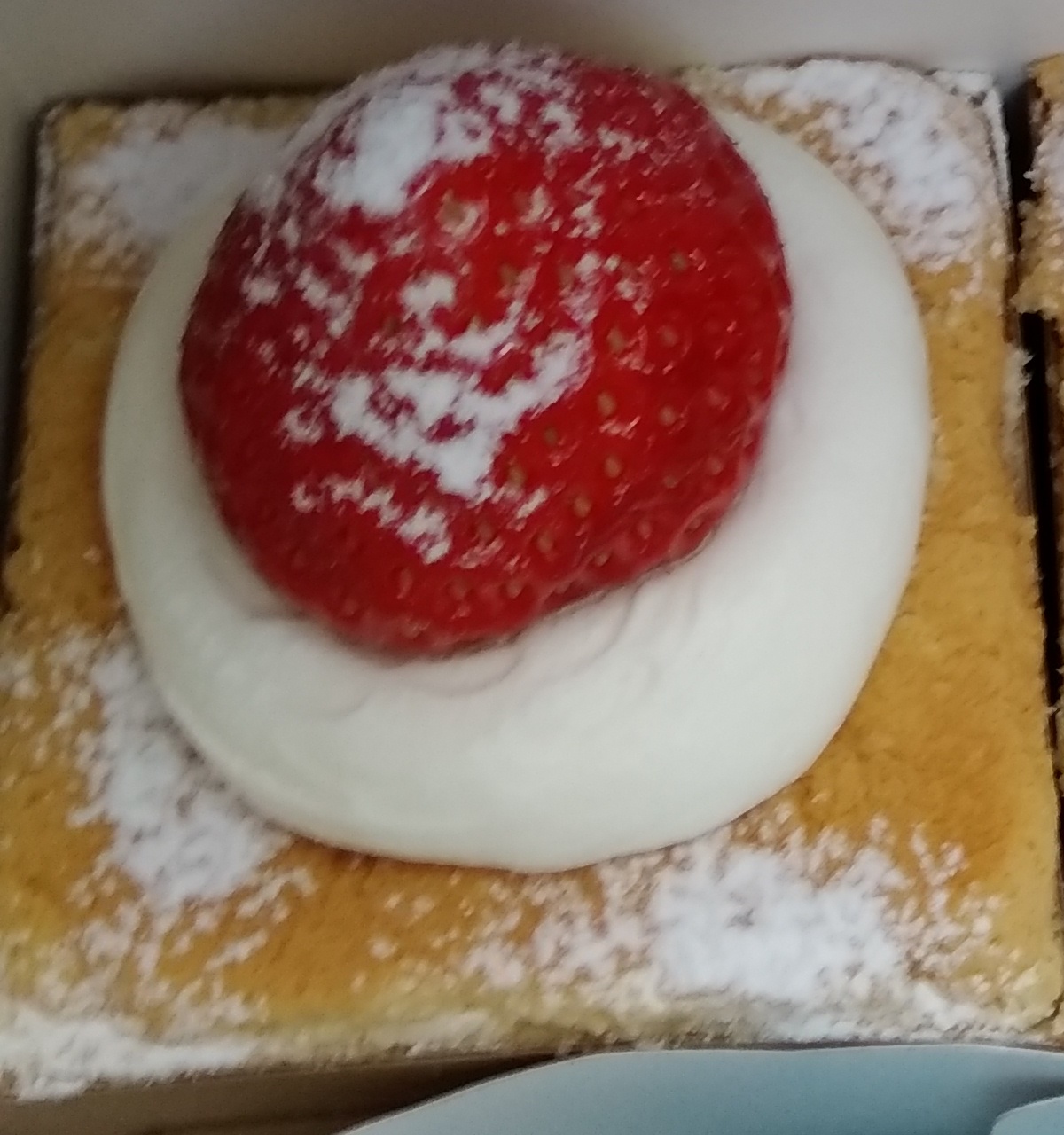 後で食べましたが、カップケーキの上のイチゴと生クリームは美味