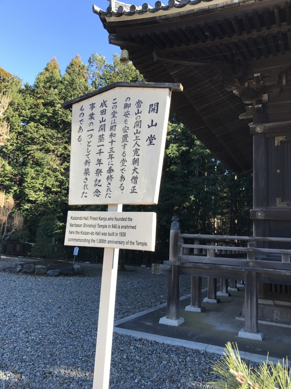 成田山新勝寺にある開山堂であります。堂山の開山上人寛朝大僧正の御姿を安置している堂であります。この堂は、昭和13年に奉修された成田山開基1000年祭記念事業の一つとして、こちらの堂は新築されたものです。