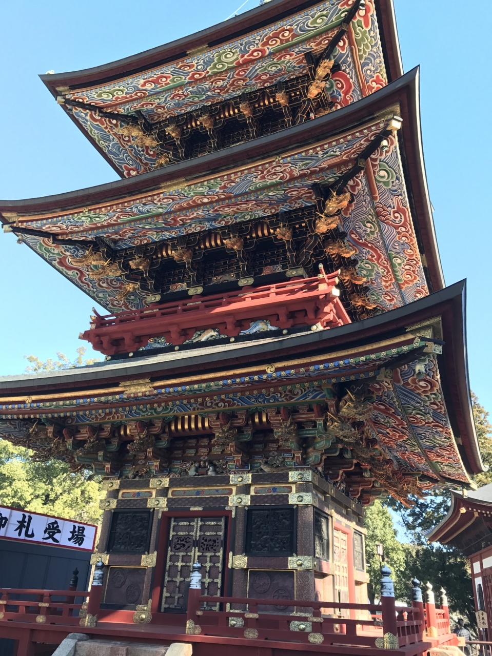 成田山新勝寺にある三重党は、1712年に建立されてから1757年、続いて1801年に大修理が行なわれております。また昭和58年にも現在の姿に復元されています。党の初層内陣に金剛如来、宝生如来、阿弥陀如来の不空成就如来が安置されてます。