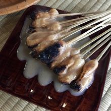 店頭で焼かれるあぶり餅の香りが香ばしく、できたてのお餅はもちもちした食感が絶妙。